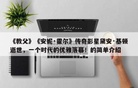 《教父》《安妮·霍尔》传奇影星黛安·基顿逝世,一个时代的优雅落幕!的简单介绍