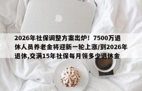 2026年社保调整方案出炉!7500万退休人员养老金将迎新一轮上涨(2026年退休,退休金多少)