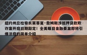 纽约州总检察长莱蒂夏·詹姆斯涉抵押贷款欺诈案开庭日期敲定!全美瞩目金融要案即将引爆法庭的简单介绍