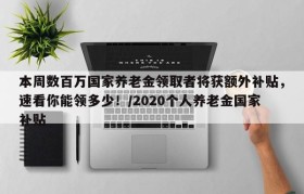 本周数百万国家养老金领取者将获额外补贴,速看你能领多少!/2020个人养老金国家补贴