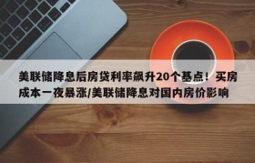 【美联储降息后房贷利率飙升20个基点!买房成本一夜暴涨,美联储降息对国内房价影响】
