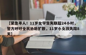 【紧急寻人!11岁女学生失联超24小时,警方呼吁全民协助扩散,11岁小女孩失踪8天】