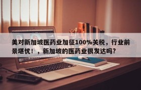 美对新加坡医药业加征100%关税,行业前景堪忧!,新加坡的医药业很发达吗?