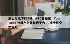 迪士尼撤下ESPN、ABC等频道,YouTubeTV用户急寻替代平台!/迪士尼突然宣布