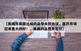 【美国与英国达成药品零关税协议,医药市场迎来重大利好!,美国药品费用管控】