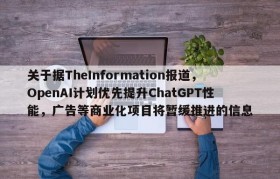关于据TheInformation报道,OpenAI计划优先提升ChatGPT性能,广告等商业化项目将暂缓推进的信息