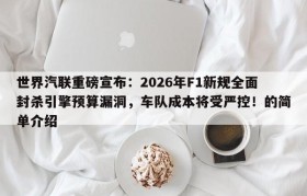 世界汽联重磅宣布:2026年F1新规全面封杀引擎预算漏洞,车队成本将受严控!的简单介绍