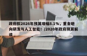 政府拟2026年预算增幅8.1%,重金砸向研发与人工智能!/2020年政府预算解读