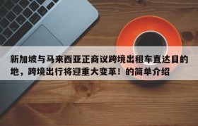 新加坡与马来西亚正商议跨境出租车直达目的地,跨境出行将迎重大变革!的简单介绍