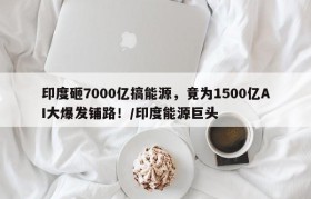印度砸7000亿搞能源,竟为1500亿AI大爆发铺路!/印度能源巨头