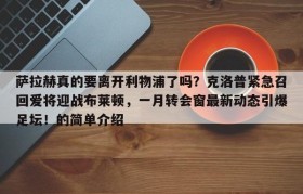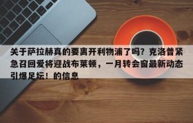 关于萨拉赫真的要离开利物浦了吗?克洛普紧急召回爱将迎战布莱顿,一月转会窗最新动态引爆足坛!的信息