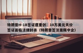 特朗普H-1B签证遭重创:10万美元天价签证面临法律封杀(特朗普签法案限中企)