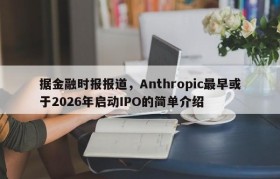 据金融时报报道,Anthropic最早或于2026年启动IPO的简单介绍
