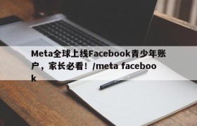 Meta全球上线Facebook青少年账户,家长必看!/meta facebook