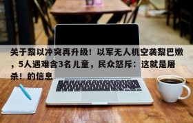 关于黎以冲突再升级!以军无人机空袭黎巴嫩,5人遇难含3名儿童,民众怒斥:这就是屠杀!的信息