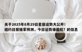 关于2025年8月29日星座运势大公开!纽约日报独家预测,今日运势谁最旺?的信息