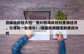 德国政府放大招:用AI和简政放权重振经济,引爆新一轮增长!/德国政局稳定的原因分析