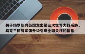 关于俄罗斯向英国发出第三次世界大战威胁,乌克兰局势紧张升级引爆全球关注的信息