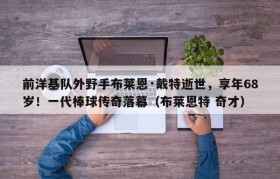 前洋基队外野手布莱恩·戴特逝世,享年68岁!一代棒球传奇落幕(布莱恩特 奇才)