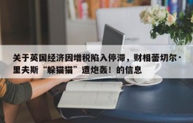 关于英国经济因增税陷入停滞,财相蕾切尔·里夫斯“躲猫猫”遭炮轰!的信息
