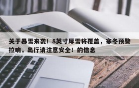 关于暴雪来袭!8英寸厚雪将覆盖,寒冬预警拉响,出行请注意安全!的信息
