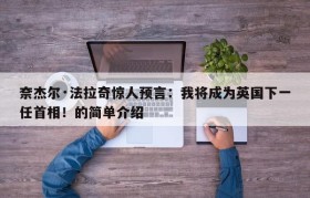 奈杰尔·法拉奇惊人预言:我将成为英国下一任首相!的简单介绍