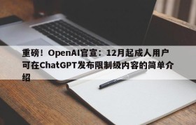 重磅!OpenAI官宣:12月起成人用户可在ChatGPT发布限制级内容的简单介绍
