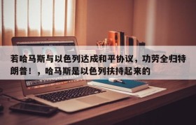 若哈马斯与以色列达成和平协议,功劳全归特朗普!,哈马斯是以色列扶持起来的