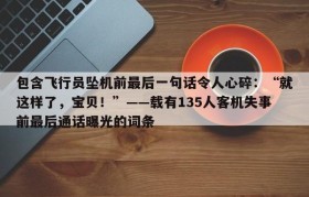 包含飞行员坠机前最后一句话令人心碎:“就这样了,宝贝!”——载有135人客机失事前最后通话曝光的词条