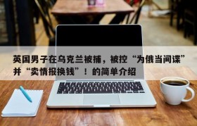 英国男子在乌克兰被捕,被控“为俄当间谍”并“卖情报换钱”!的简单介绍