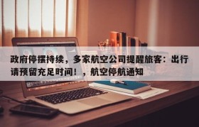 政府停摆持续,多家航空公司提醒旅客:出行请预留充足时间!,航空停航通知