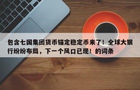 包含七国集团货币锚定稳定币来了!全球大银行纷纷布局,下一个风口已现!的词条