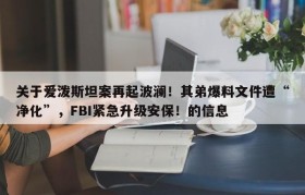 关于爱泼斯坦案再起波澜!其弟爆料文件遭“净化”,FBI紧急升级安保!的信息