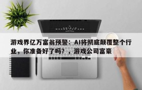 游戏界亿万富翁预警:AI将彻底颠覆整个行业,你准备好了吗?,游戏公司富豪