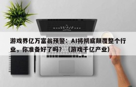 游戏界亿万富翁预警:AI将彻底颠覆整个行业,你准备好了吗?(游戏千亿产业)