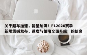 关于超车加速,能量加满!F12026赛季新规震撼发布,速度与策略全面升级!的信息