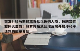 突发!哈马斯释放首批以色列人质,特朗普斡旋停火生效!各方领袖急赴埃及展开加沙和平谈判的简单介绍