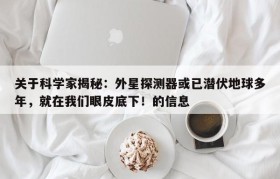 科学家揭秘:外星探测器或已潜伏地球多年,就在我们眼皮底下!的简单介绍