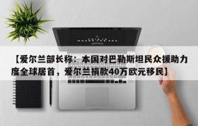 【爱尔兰部长称:本国对巴勒斯坦民众援助力度全球居首,爱尔兰捐款40万欧元移民】
