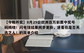 【今晚开奖】8月29日欧洲百万彩票中奖号码揭晓!闪电球结果同步更新,速看你是否天选之人!的简单介绍