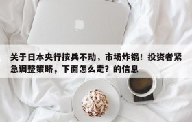 关于日本央行按兵不动,市场炸锅!投资者紧急调整策略,下面怎么走?的信息