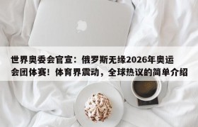 世界奥委会官宣:俄罗斯无缘2026年奥运会团体赛!体育界震动,全球热议的简单介绍