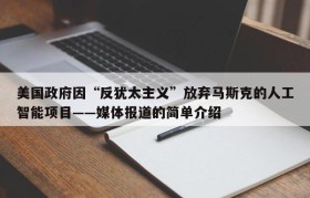 美国政府因“反犹太主义”放弃马斯克的人工智能项目——媒体报道的简单介绍