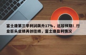 富士康第三季利润飙升17%,远超预期!行业巨头业绩再创佳绩,富士康盈利情况