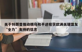 关于特朗普推动俄乌和平进程获欧洲关键盟友“全力”支持的信息