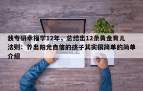 我专研幸福学12年,总结出12条黄金育儿法则:养出阳光自信的孩子其实很简单的简单介绍