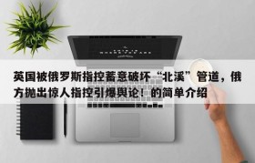 英国被俄罗斯指控蓄意破坏“北溪”管道,俄方抛出惊人指控引爆舆论!的简单介绍