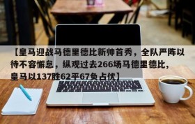 【皇马迎战马德里德比新帅首秀,全队严阵以待不容懈怠,纵观过去266场马德里德比,皇马以137胜62平67负占优】