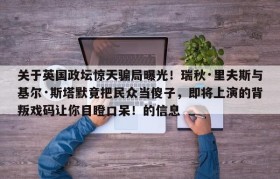 关于英国政坛惊天骗局曝光!瑞秋·里夫斯与基尔·斯塔默竟把民众当傻子,即将上演的背叛戏码让你目瞪口呆!的信息