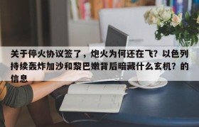 关于停火协议签了,炮火为何还在飞?以色列持续轰炸加沙和黎巴嫩背后暗藏什么玄机?的信息